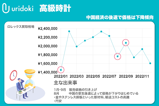 【時計】中国経済の後退で価格は下降傾向