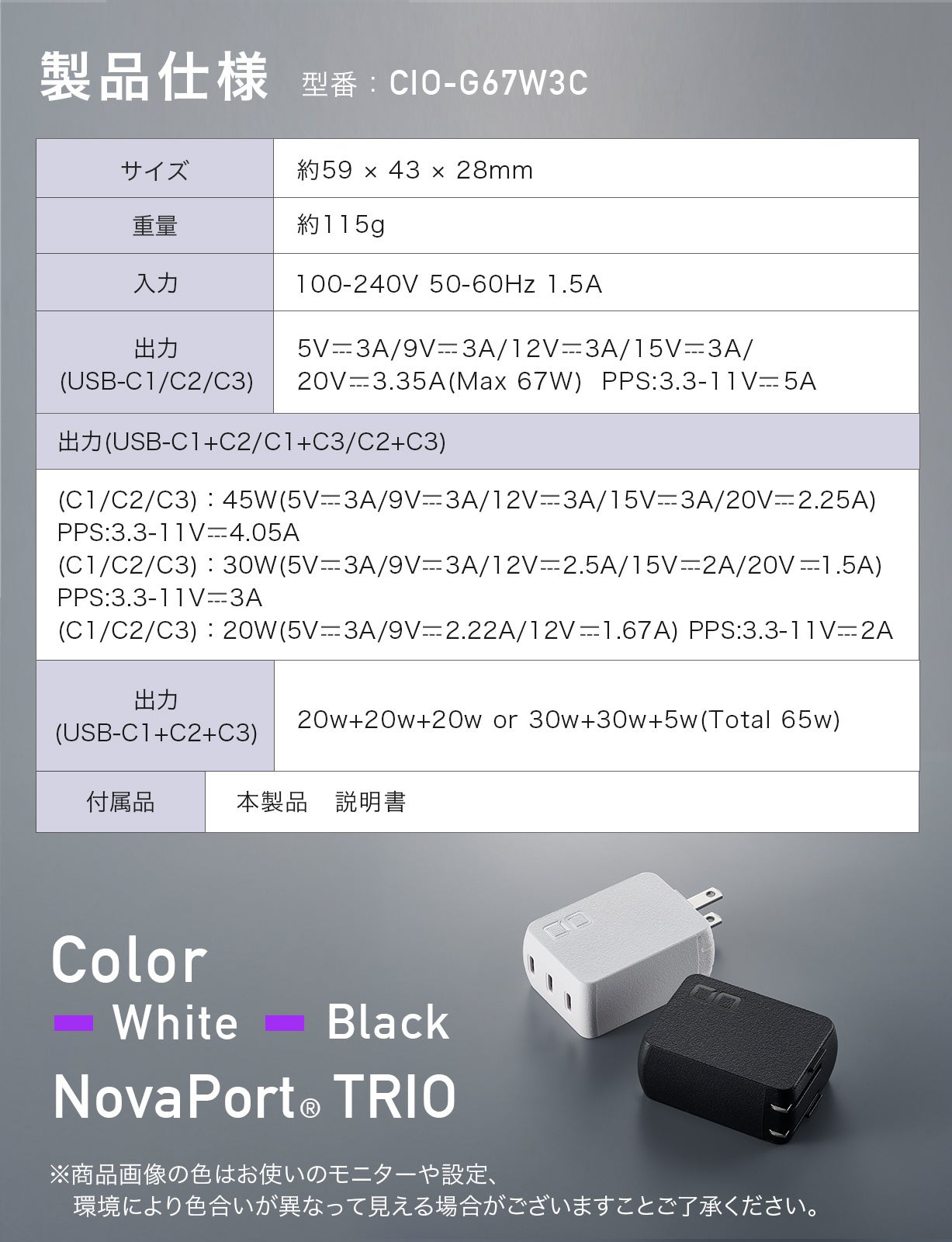 商品情報:『NovaPort TRIO 65W3C』(CIO-G67W3C)