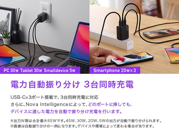 ※電力自動振り分け機能「Nova Intelligence」は2ポート使用時に機能します。3ポート使用時は固定出力となります。