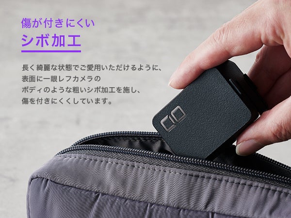 また、国内の有名デザイナー監修のフォルム、ラウンドとエッジを組み合わせることで、デバイスとの相性を保ちながら、手に持ちやすいデザインに。ポート部分にはCIOの表現する「未来感」を表すコーポレートカラーのCIOパープルをアクセントに。側面にはCIOのロゴをアルミプレートで配置することで、高級感を演出しました。