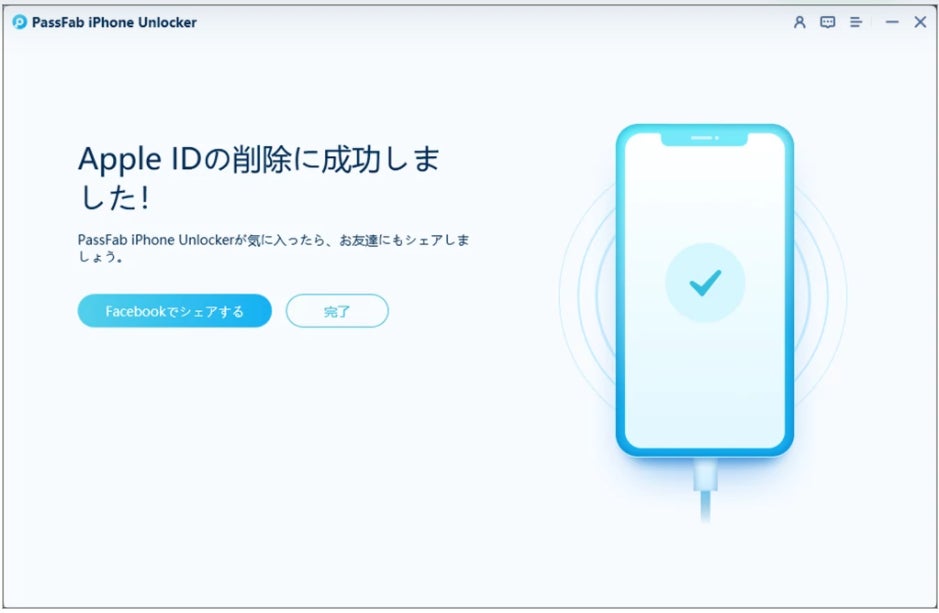Step3:しばらくすると、Apple IDロックが正常に削除され、iCloudアカウントがデバイスから削除されました。これで、新しいApple IDでログインして、すべての機能をお楽しみいただけます。