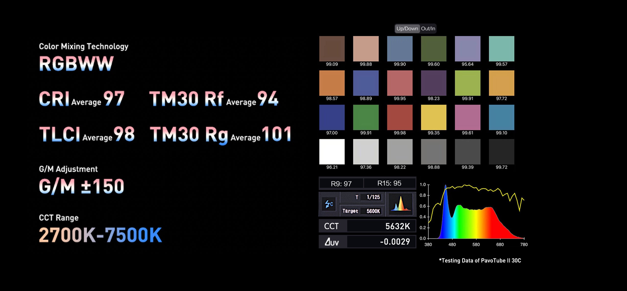 PavoTubeシリーズは、最大36000色の調色を誇るフルカラーのチューブ型LEDライトです。