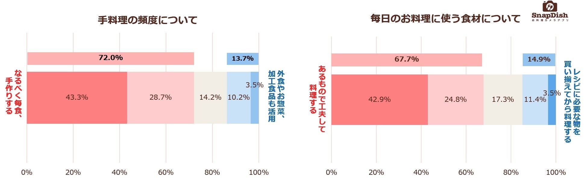 - 節約の意識は、手料理の頻度や買い物、食品選びにも。アルモンデ・手料理・ストックが多数派に。