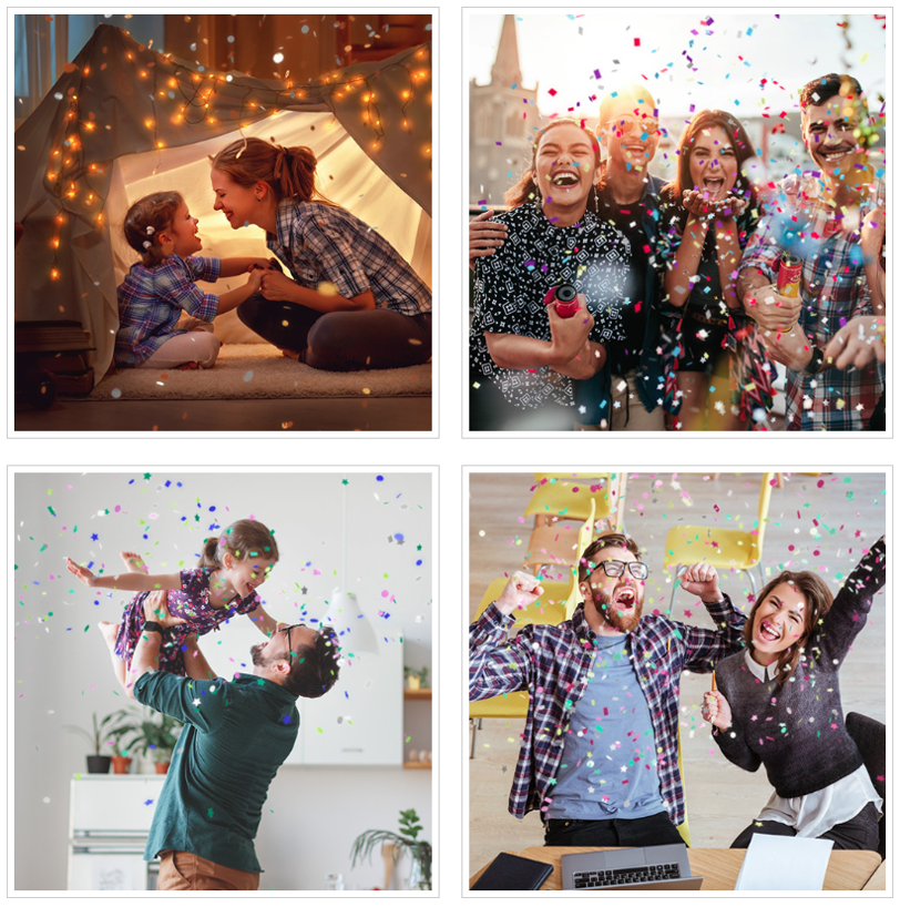 華やかな紙吹雪の舞う8種類のアニメーションオーバーレイです。