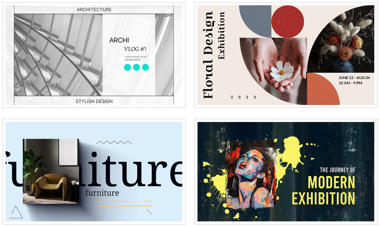 スタイリッシュなデザインが美しい、4種類のオープニング動画テンプレートです。