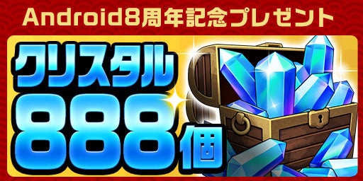 Android版リリース8周年を記念してクリスタルが888個もらえるスペシャルログインボーナスや、ログインをすると必ず何かが当たる超大感謝ドリームくじを実施いたします。