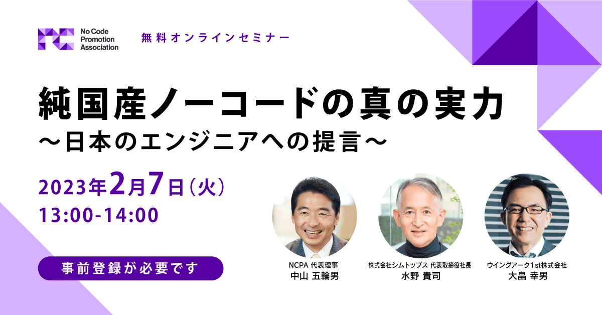 登壇:ノーコード推進協会(NCPA)、株式会社シムトップス、ウイングアーク1st株式会社