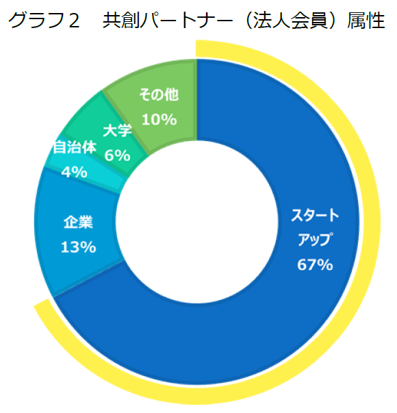 共創パートナー(法人会員)の約7割がスタートアップとなっています。直近の傾向としては、スタートアップや企業との連携を期待する自治体・大学の登録が増加しています。