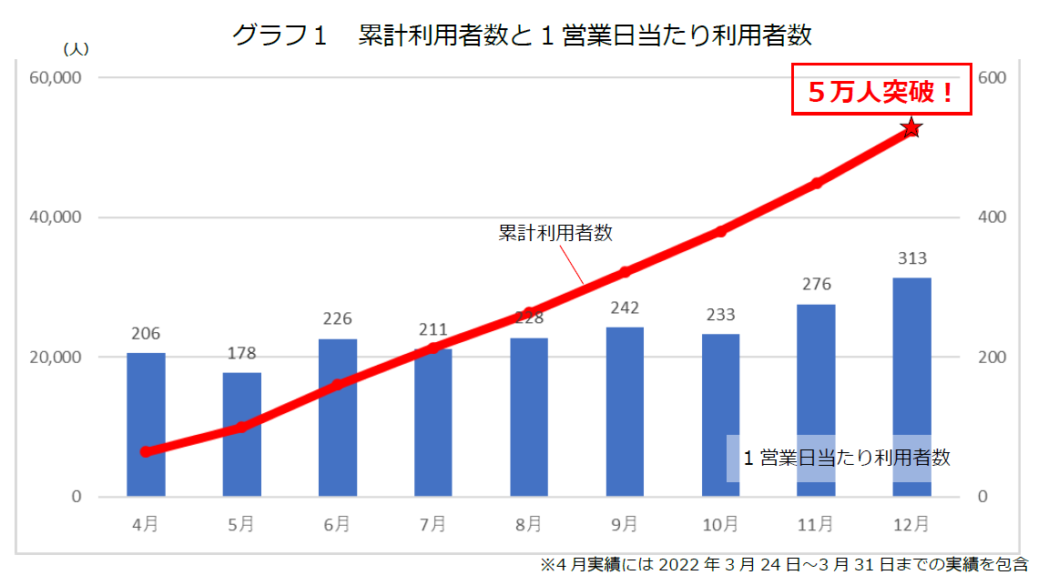 1日の利用者数はコミュニティの活性化に伴って増加しており、直近の2022年12月には300名を超えています。(グラフ1参照)