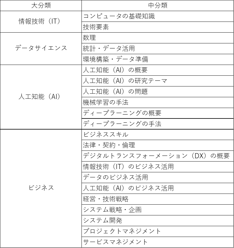 出題範囲は、ビジネス・ITの基礎知識やAI・データサイエンスに関する基礎知識まで幅広く出題されます。