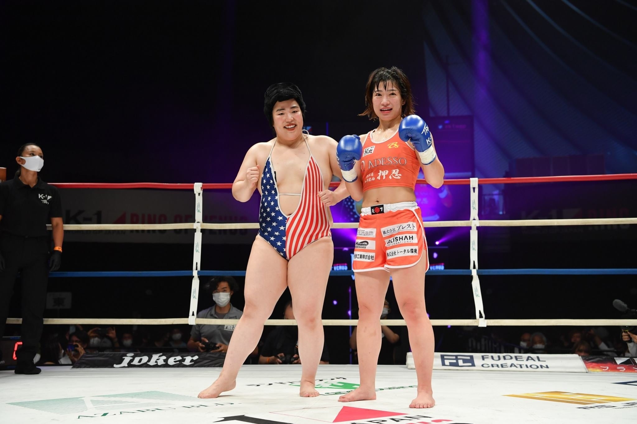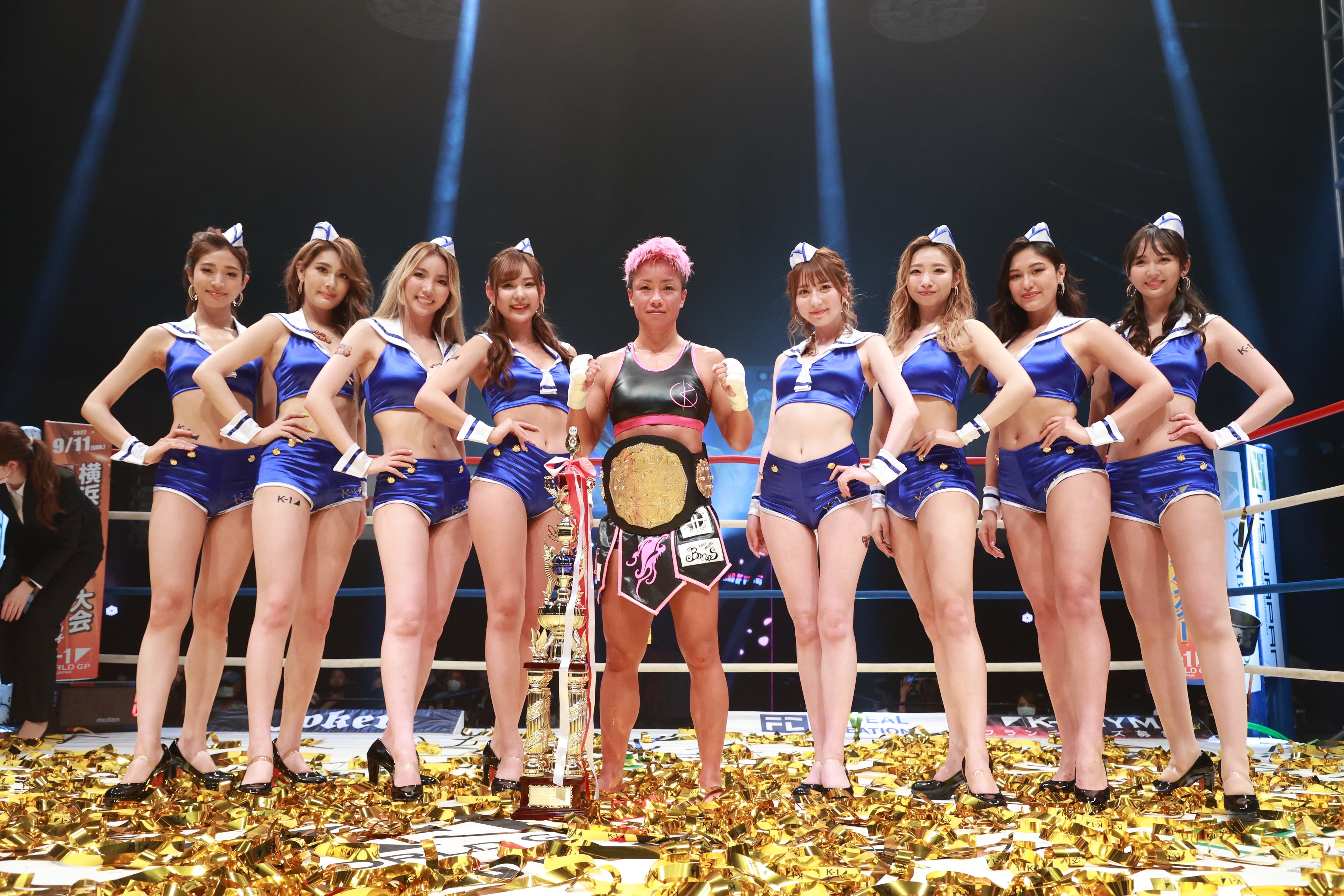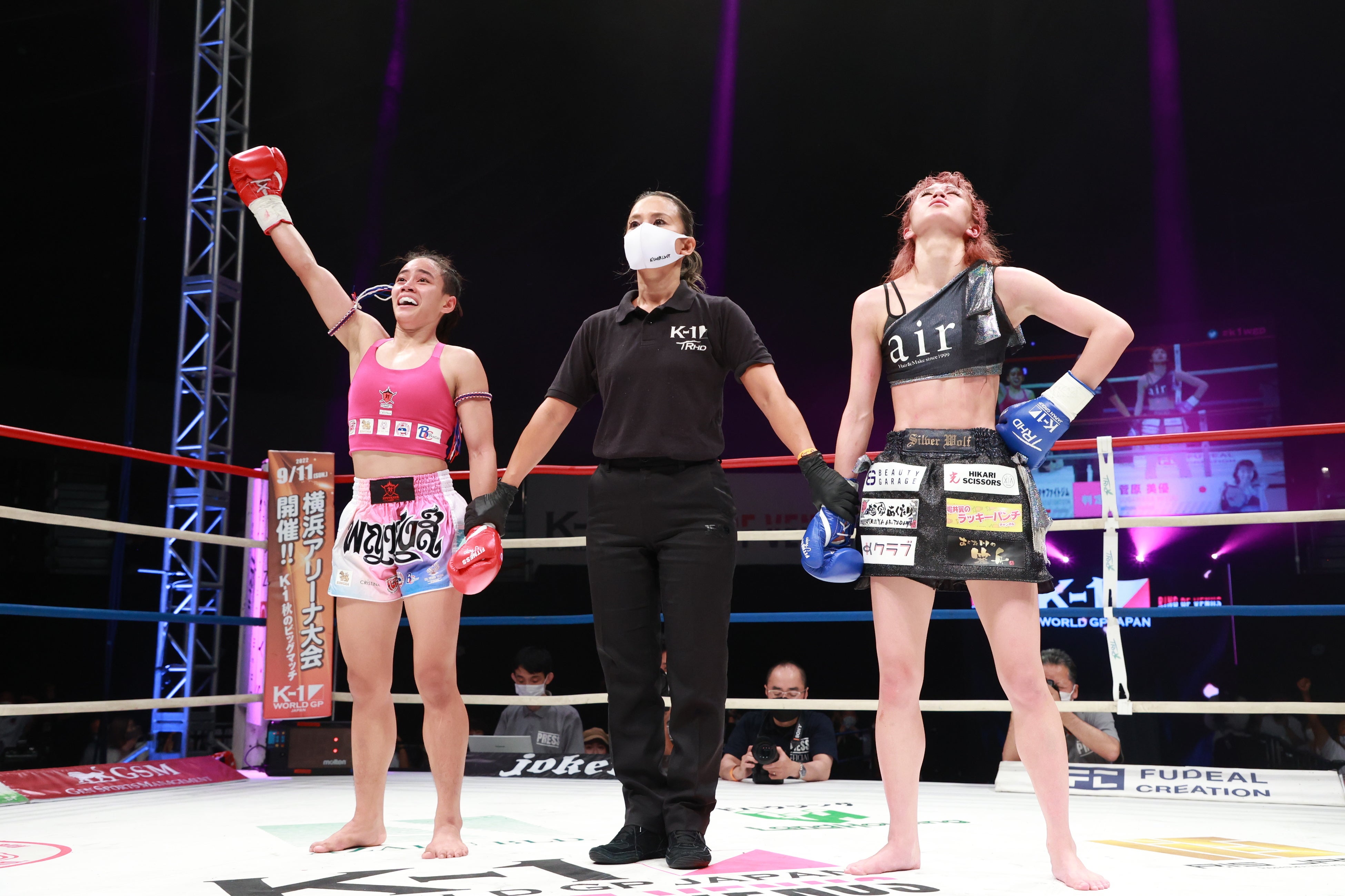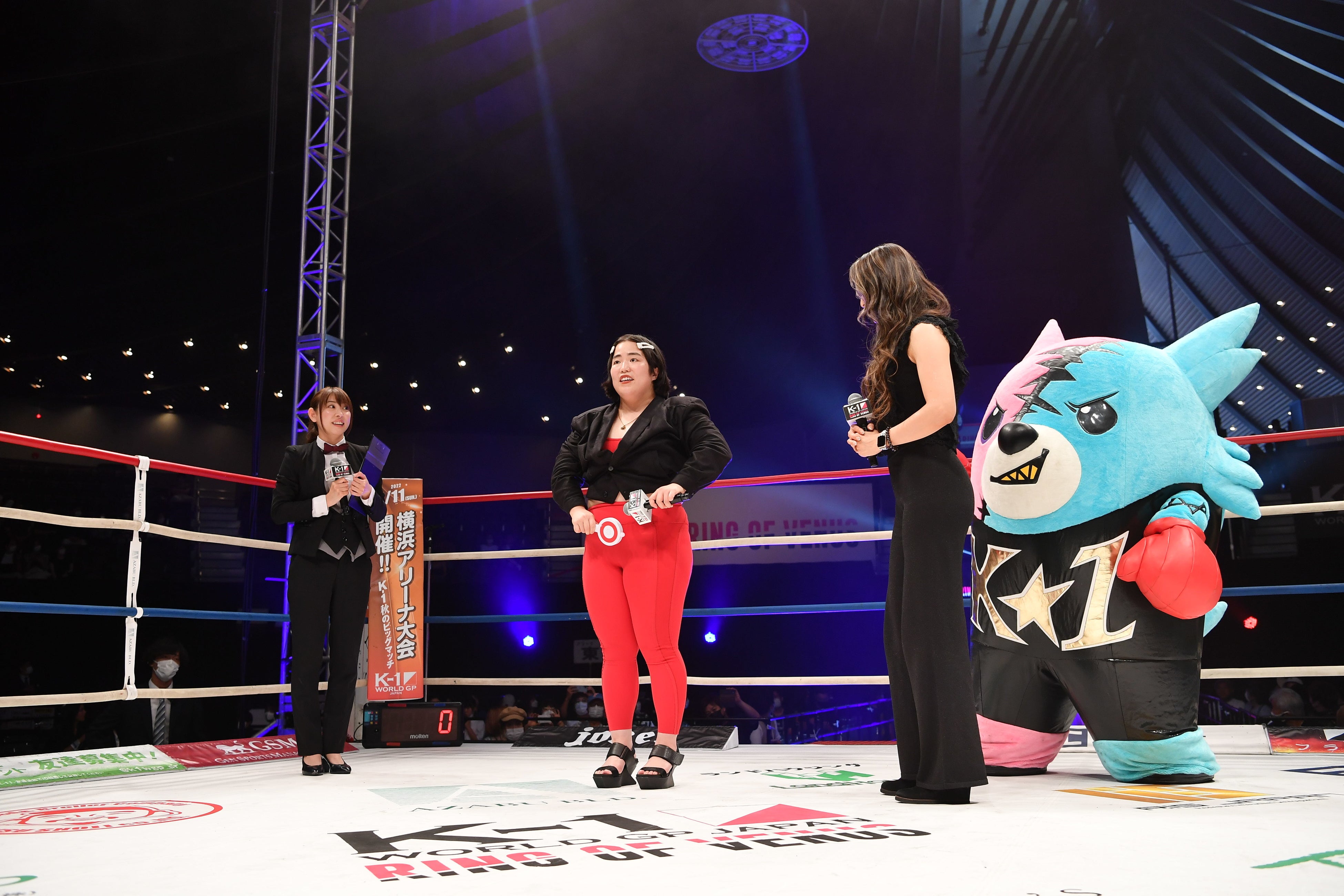 今大会ではK-1女子のエース・パイオニアとして女子部門を牽引してきたKANAが、フライ級王者として初防衛戦を行い、タイ在住のフランス人選手でミャンマーラウェイの世界王座を持ち、素手ボクシングにも挑戦しKANAを上回るKO率を持つスーリ・マンフレディ選手に見事、KOで勝利しました。