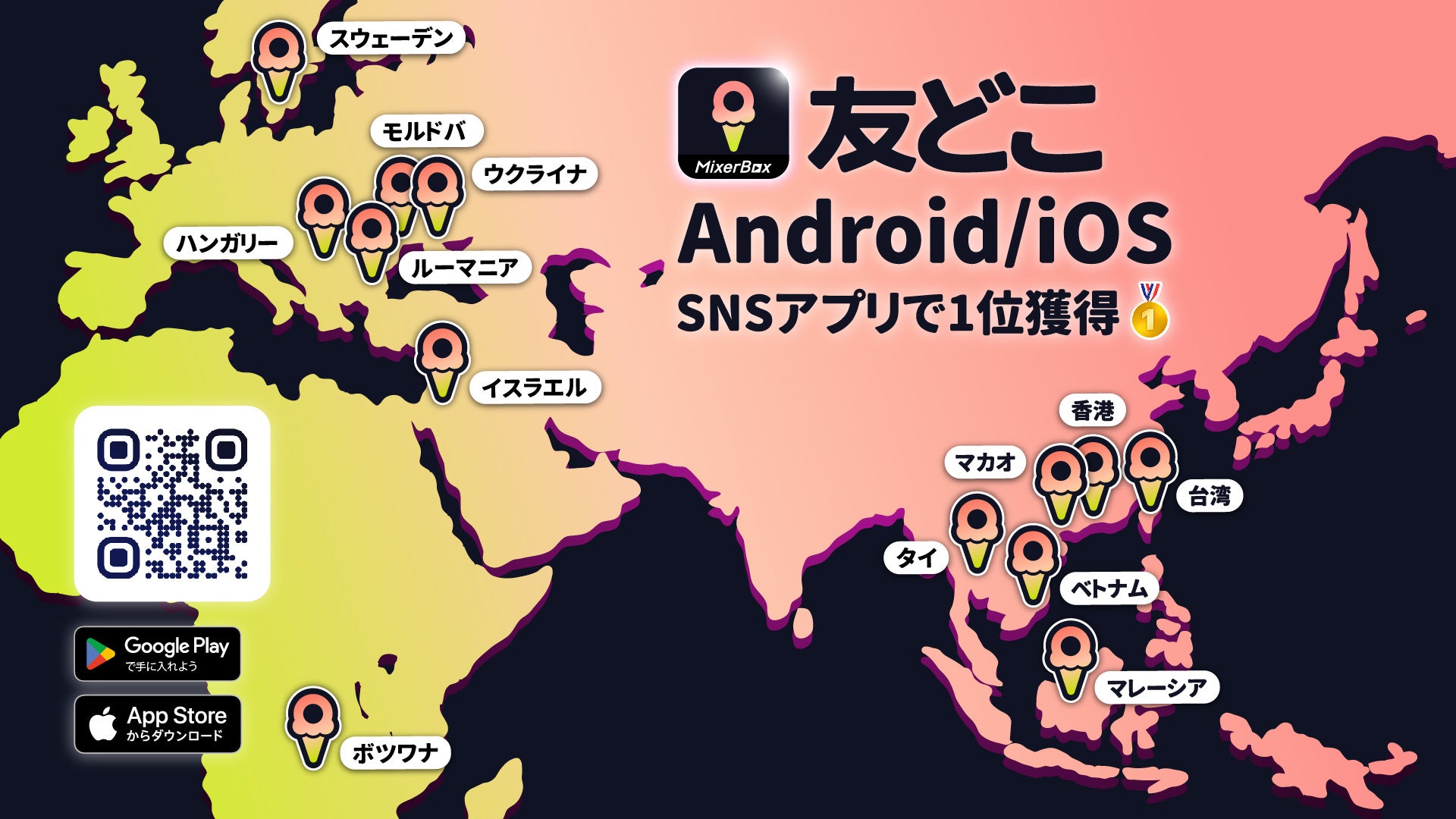 人々の生活をより便利にするスーパーアプリの開発を手掛けるMixerBox Inc.(以下MixerBox)の日本法人であるミクサーボックス株式会社(本社:東京都渋谷区、以下ミクサーボックス)は本日、Android/iOS対応の無料位置情報共有アプリ「友どこ」の日本語バージョンに、4つの新機能を追加し、ユーザーへより優れた位置情報共有の体験を提供することを発表しました。「友どこ」日本語バージョンは、サービス開始からわずか1ヵ月未満のうちに急伸し、MixerBox全アプリの世界での累計ダウンロード数3.8億突破の実績に貢献しています。