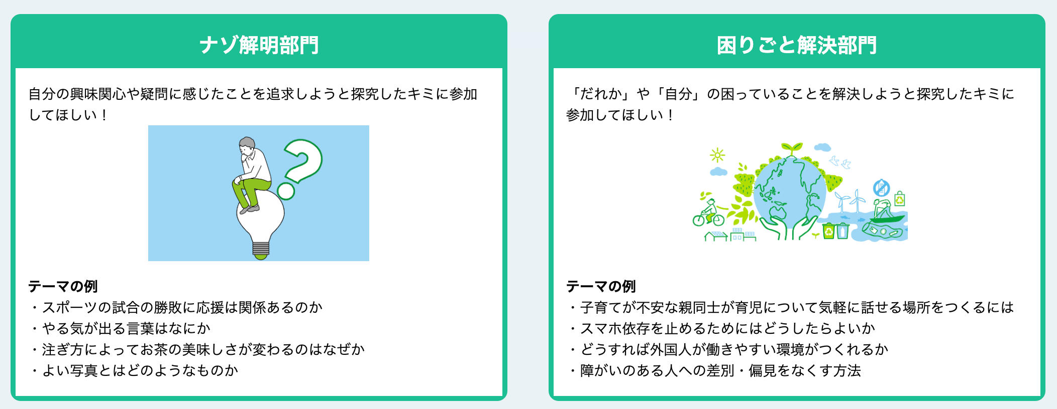 2022年度より「ナゾ解明部門」「困りごと解決部門」の2部門で募集します。