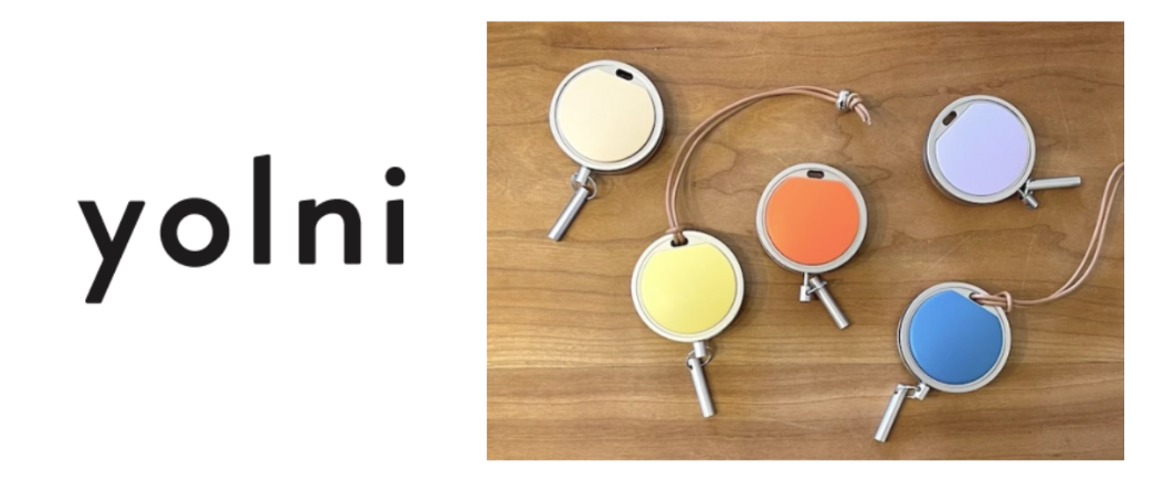 yolni(ヨルニ)はスマートフォンと通信するスマート防犯アクセサリー。いざという時の位置情報通知機能などで夜道に安心を提供します。
