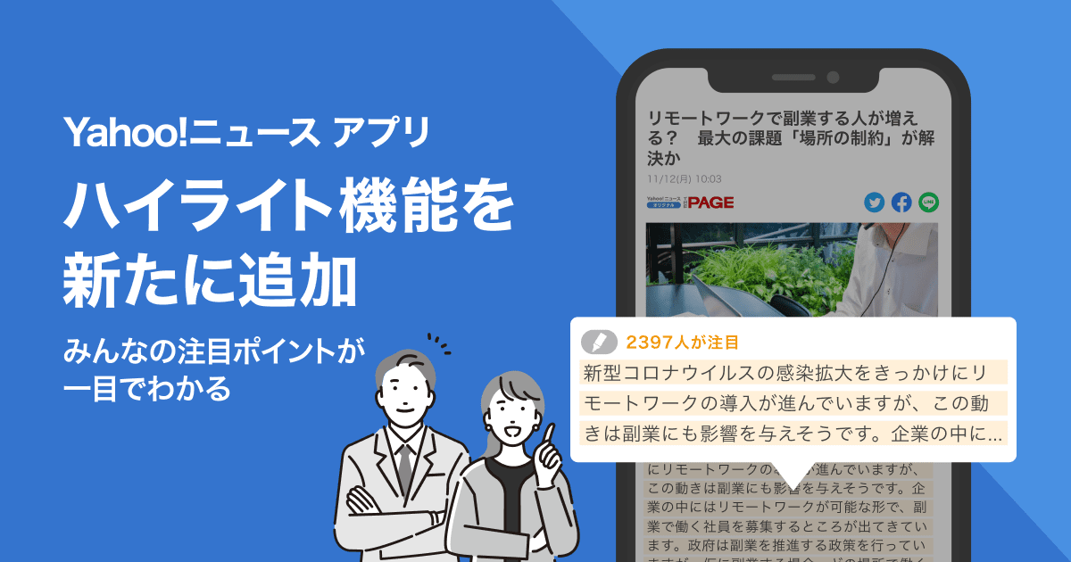 ヤフー株式会社(以下、Yahoo! JAPAN)が運営する日本最大級のインターネットニュース配信サービス「Yahoo!ニュース」アプリ(iOS版)は本日、ニュース記事内の気になったポイント(パラグラフ)に印をつけられる「ハイライト機能」の提供を開始しました(※)。