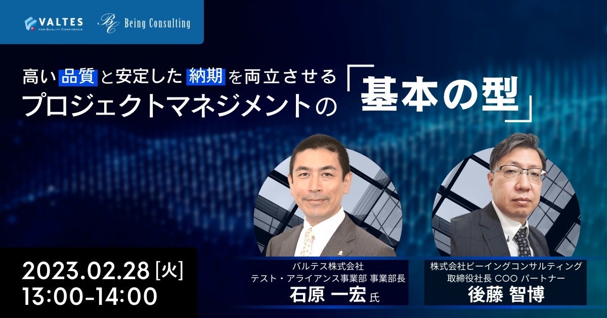 当社テスト・アライアンス事業部 事業部長 石原は「品質」の観点から、ビーイングコンサルティングCOO後藤氏は「納期/リードタイム」の観点から、実践経験や最新情報と合わせて、それぞれ押さえるべきプロジェクトマネジメントの『基本の型』を皆様にご紹介します。