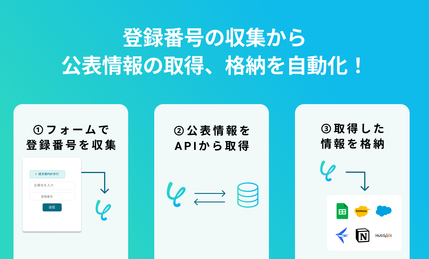 Yoom株式会社(本社:東京都千代田区、 代表取締役:波戸﨑駿)は、業務を自動化するSaaS連携データベース「Yoom(ユーム)」(https://yoom.fun)にて、2023年10月1日から導入されるインボイス制度(適格請求書等保存方式)に必要となる適格請求書発行事業者の登録番号や事業者処理区分などの情報取得を自動で取得できるようになります。本件は、国税庁が提供する適格請求書発行事業者公表システムのWeb-APIとの連携を実施したことで、適格請求書発行事業者の情報収集が可能になりました。