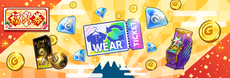 「New Yearミッション」の内容が追加され、ミッションを達成することで「福引券」が得られます。福引券を使用することで「ウェア交換チケット」や「Gジュエル」など豪華報酬が当たる「福引」に参加できます。