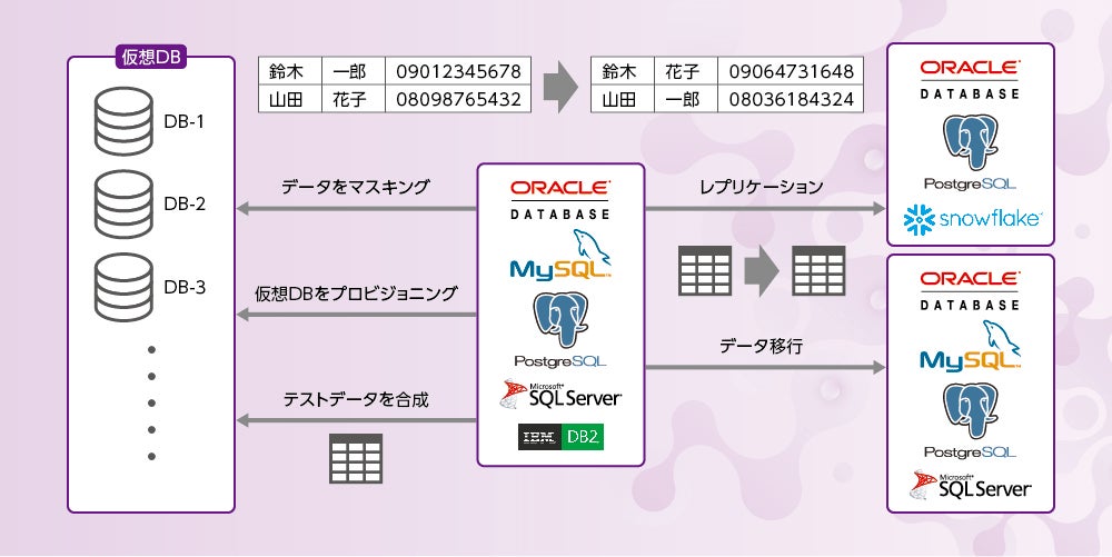 ソースデータを、オンプレミスまたはクラウド上のターゲットデータベースに、高速かつ安全でユーザーフレンドリーな方法でコピーします。プライバシーを最大限に保護するためのオンザフライマスキングと、最適なサブセット機能を提供します。