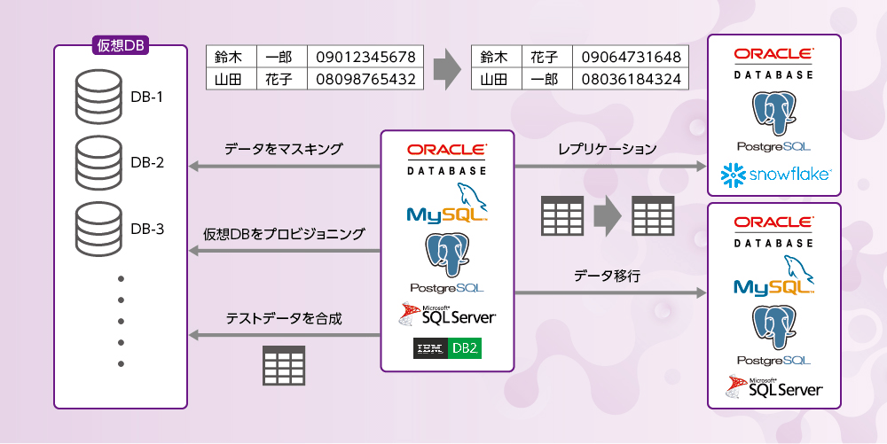 ソースデータを、オンプレミスまたはクラウド上のターゲットデータベースに、高速かつ安全でユーザーフレンドリーな方法でコピーします。プライバシーを最大限に保護するためのオンザフライマスキングと、最適なサブセット機能を提供します。