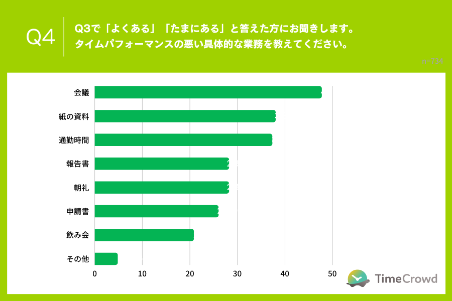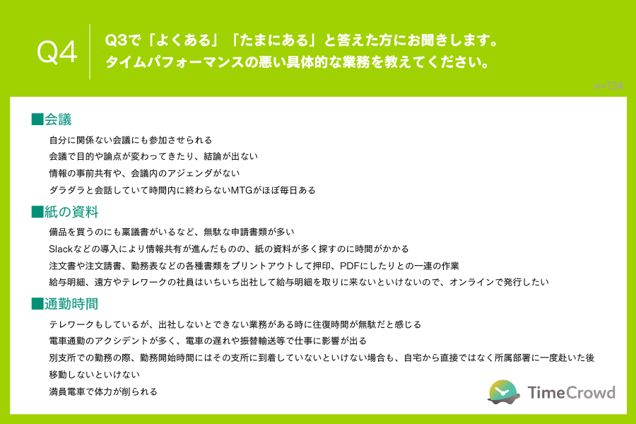 Q4 Q3で「よくある」「たまにある」と答えた方にお聞きします。タイムパフォーマンスの悪い具体的な業務を教えてください。