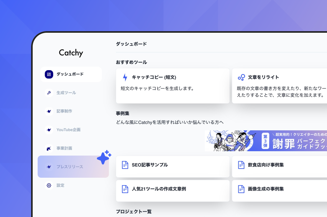 ■ AIライティングアシスタント「Catchy」について