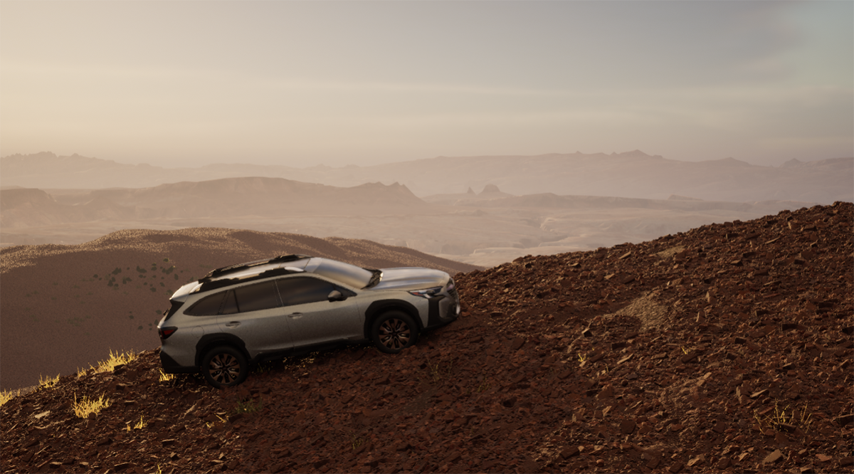 当社では引き続きSUBARUからのリクエストに応え、Unreal Engine 5活用によるさらなる高品質化、車挙動のリアリティさの追求、悪路での走行シーンにおける砂・砂利・粉塵などのエフェクト追加など、デザインレビューの幅を広げるための取り組みを進めているところです。