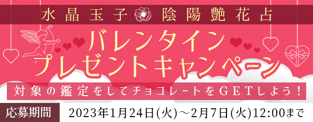 テレビ番組「ゴゴスマ」「ダウンタウンDX」出演で話題の占い師「水晶玉子」が月額公式サイトで、『バレンタインプレゼントキャンペーン』を公開しました。対象の鑑定をご購入いただいた方の中から抽選で3名様にGODIVA caféにて期間限定販売中の「フォーチュンショコラ コレクション」をプレゼントいたします。このチョコレートは水晶玉子監修の占いをお楽しみいただけます。この機会をお見逃しなく!
