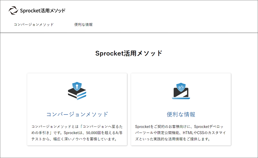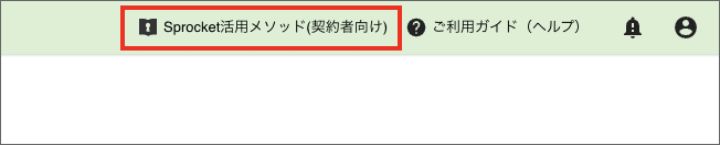 Sprocket活用メソッドをご利用いただくには、Sprocketの管理画面へのログインが必要です。Sprocket管理画面の右上にある「Sprocket活用メソッド(契約者向け)」のリンクをクリックしていただくことで、特設ページをご覧いただけます。