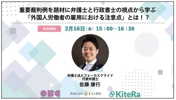 本セミナーでは、弁護士法人フォーカスクライドの佐藤先生をお招きし、外国人雇用に関する過去の重要裁判例を題材に、弁護士と行政書士の視点から、外国人労働者を雇用する際のチェックポイントを解説します。外国人労働者の雇用に関する基本的な知識に加え、弁護士や行政書士という別の視点からの知見や周辺知識を習得しておくことで、日々のコンサルティングや労務相談業務において質の高いサービスを提供することにつながり、社労士としてのさらなるレベルアップにも資すると考えております。