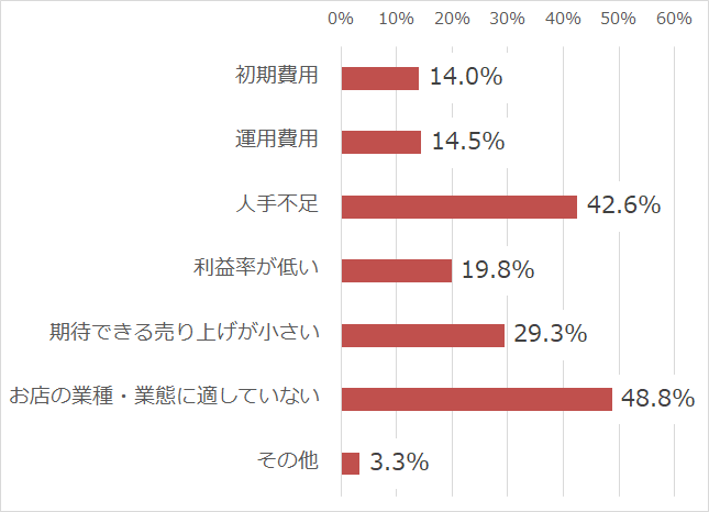 また前回の調査※2 でも明らかになったが、小規模飲食店は利益率の低く、施策を打とうにも、期待される売り上げのインパクトが大きくない場合、手が出せないというジレンマに陥っていることが分かった。