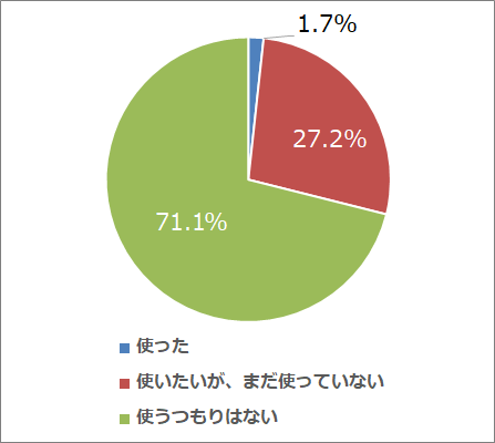 同様にデリバリーについて、導入に関する補助金、助成金について知っているか質問したところ(Q12)、71.8%が「1つも知らない」と回答した。続いて補助金利用の意向について尋ねると(Q13)、71.1%が「使うつもりはない」と回答し、使わない理由は「よくわからない」が最多41.9%だった(Q14)。