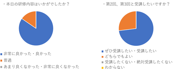 研修後に実施した参加者の皆さまからのアンケート結果は以下の通りです。