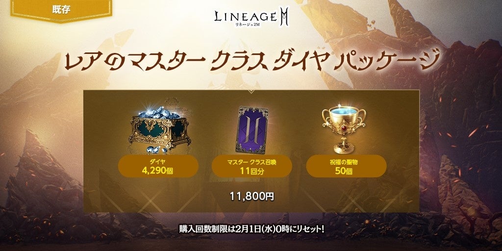ダイヤ4,290個と「月下のマスター クラス獲得券(11回)(刻印)」1個、「祝福の聖物」50個がセットになった、「レアのマスター クラス ダイヤ パッケージ」が登場しました。