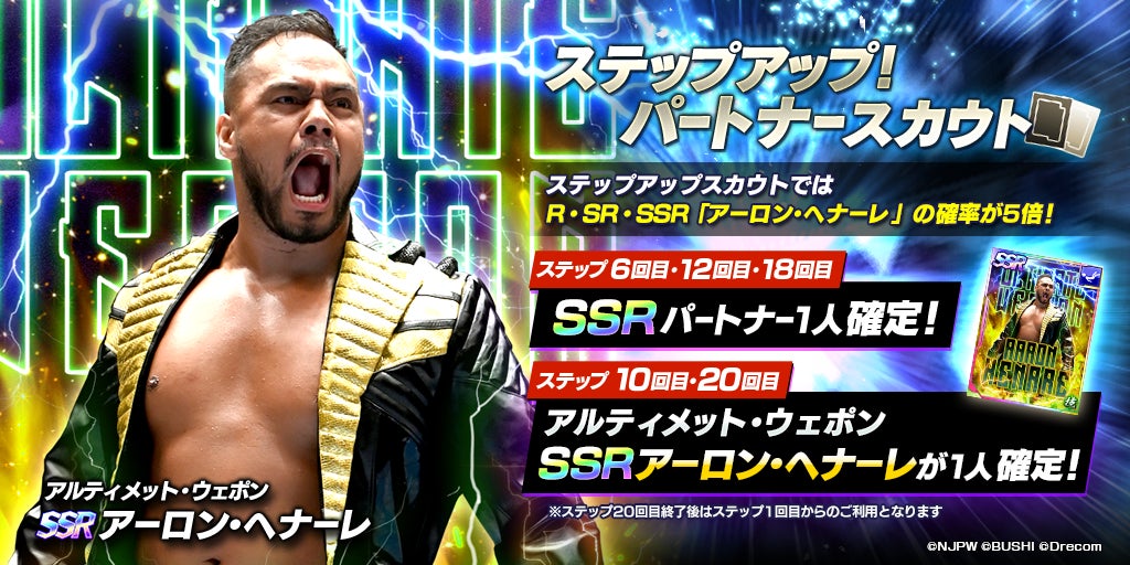 - 新規パートナーとして、SSR、SR、Rアーロン・ヘナーレ選手が登場!ステップアップパートナースカウトを開催!