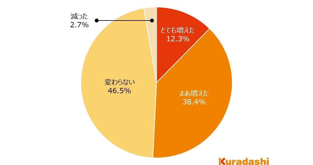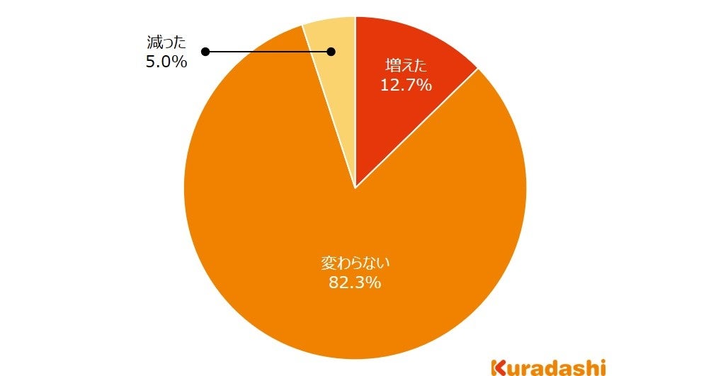 「変わらない」と回答した方が最も多く82.3%でした。「増えた」と回答した方が12.7%、「減った」と回答した方が5.0%でした。