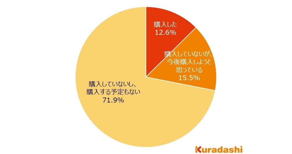 「購入した」「購入していないが、今後購入しようと思っている」を合計した割合が最も多いのは30歳~39歳で32.5%でした。一方で、19歳以下を除いて「購入した」「購入していないが、今後購入しようと思っている」を合計した割合が20%を下回っていたのが20歳~29歳でした。