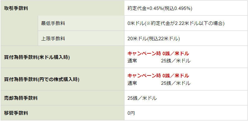 内容:米ドル買い時に発生する為替手数料(1米ドルあたり25銭)が無料となります。また、円貨決済での米国株買付時の為替手数料も無料となります。
