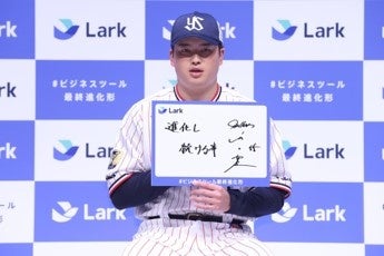 その後、CM内の「優れたプレイヤーには優れた環境が必要だ。だからこそ、優れたチームプレーが生まれていく」という表現にちなんだトークを展開。村上選手は「優れたプレイヤーに環境は重要ですね。野球はチームスポーツなので。皆さまも『Lark』で一流のビジネスパーソンを目指してほしい」とコメントいただきました。