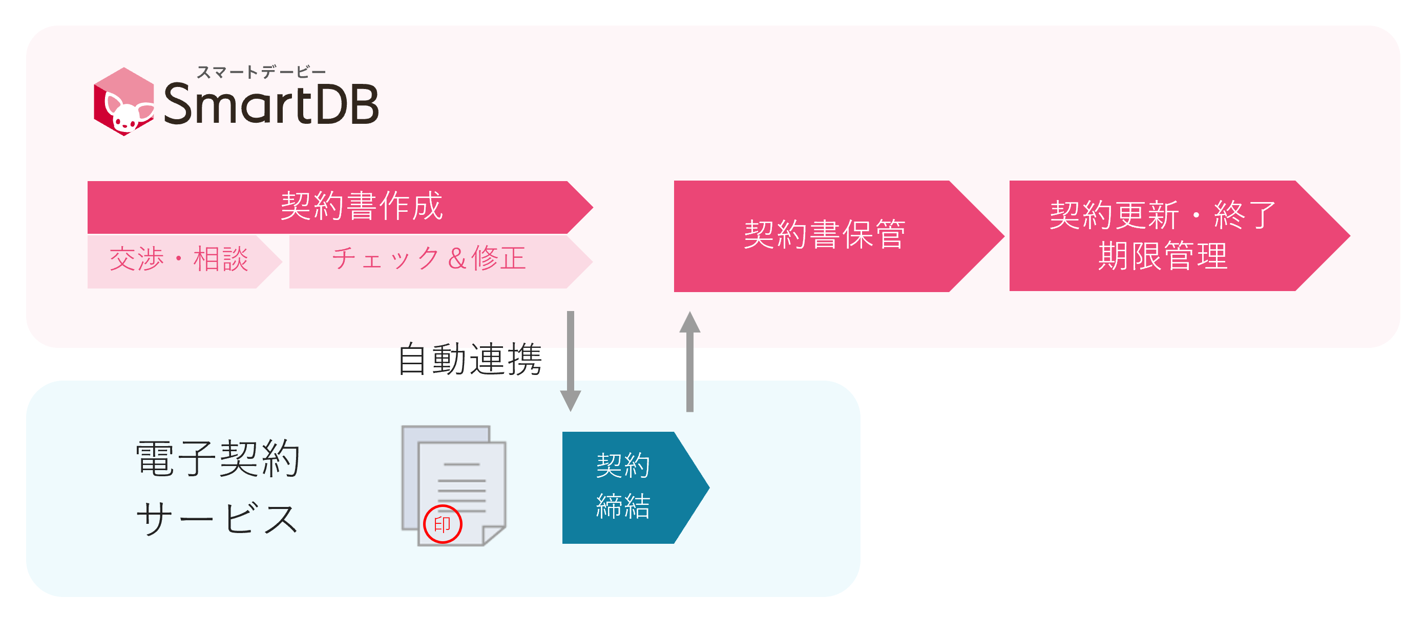 【イメージ:契約管理におけるSmartDB(R)の活用範囲】