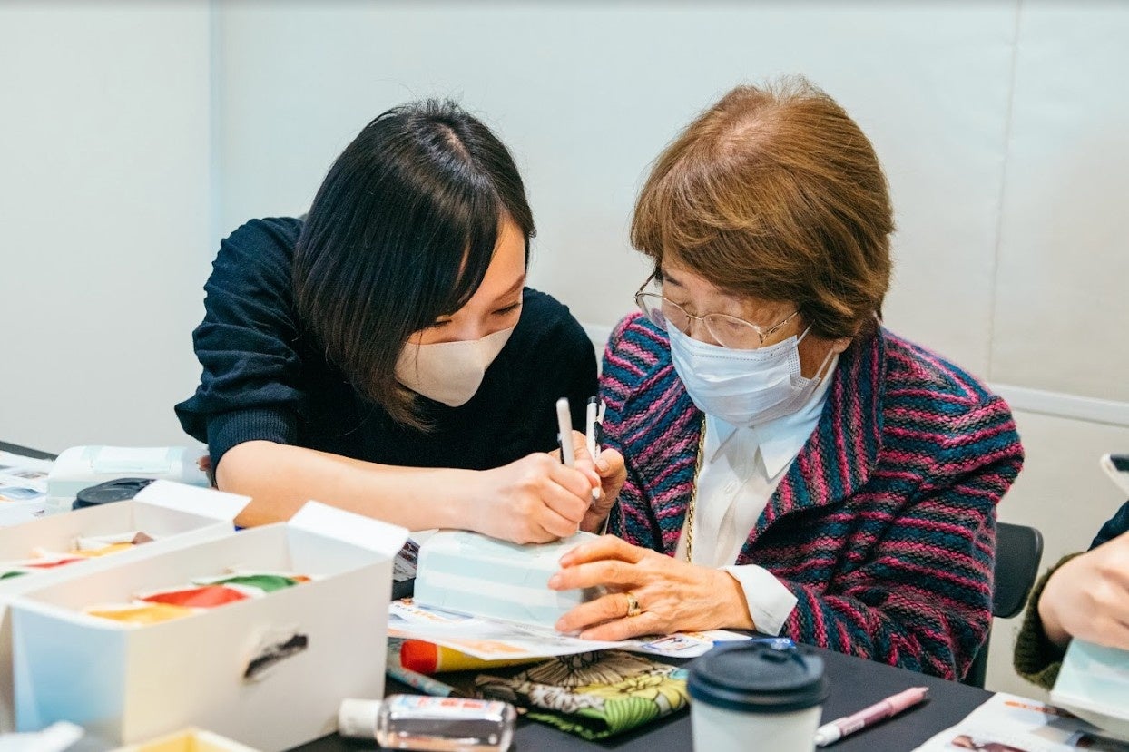 イベントでは、シニア世代の自宅に訪問する大学生インターンを中心とした「もっとメイトパートナー」が運営をサポート。参加するシニア世代の方々と一緒に『楽習フォーラム』の趣味教室に参加し、より楽しい空間をつくることをお手伝いしました。