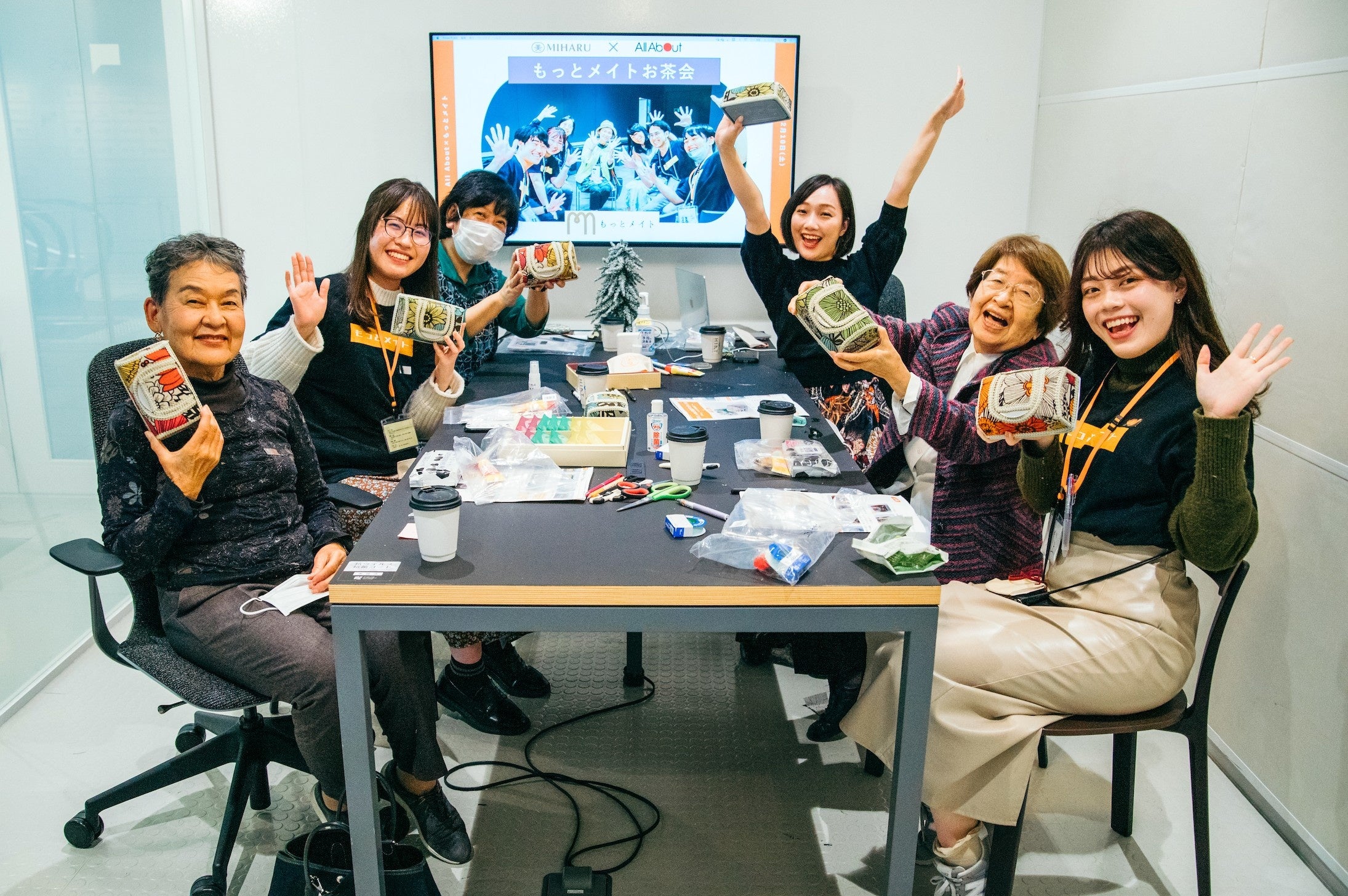 ・成果:手や頭を動かしながら、Z世代との世代間交流を通して、シニア世代の方々が好奇心を持って取り組んで頂くことができました。参加したシニア世代だけでなく、もっとメイトパートナーも一緒に作成に取り組み、参加者全員が楽しい時間を共有できました。