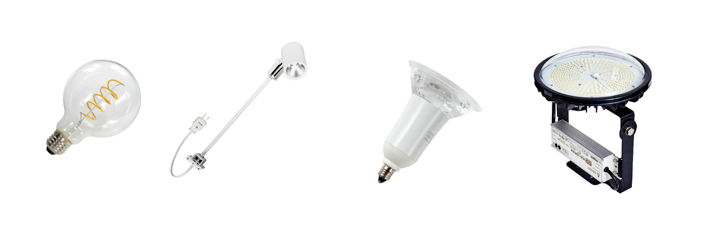 また工業用の高天井灯・投光器・ビームランプなども取り扱い、一般家庭の灯りから工業用の灯りまで幅広く