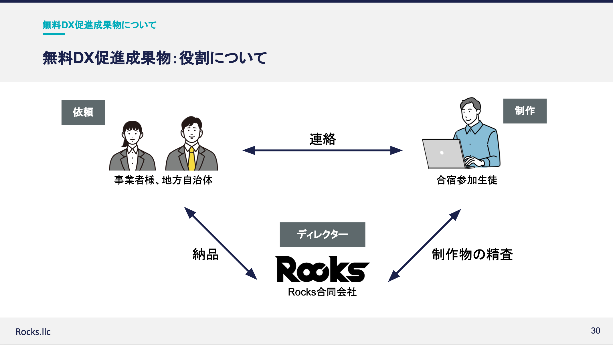 本セミナーでは、2023年2月から実施される「ゴリラフリーランス育成合宿(https://freelancecamp.rocksss.com/)」と連携し、ホームページ・動画などを無料で制作できる仕組みについて紹介。