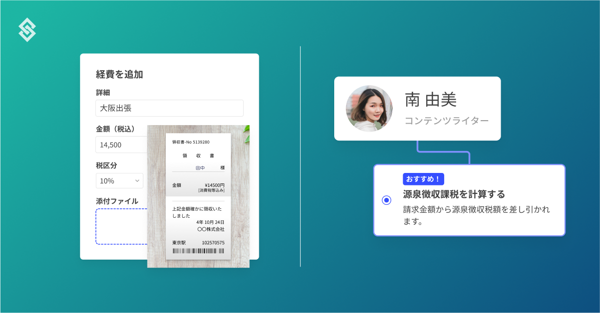 また、請求書作成者が源泉徴収の対象者か否かを職種から特定することで、法的要件の漏れも防ぎます。