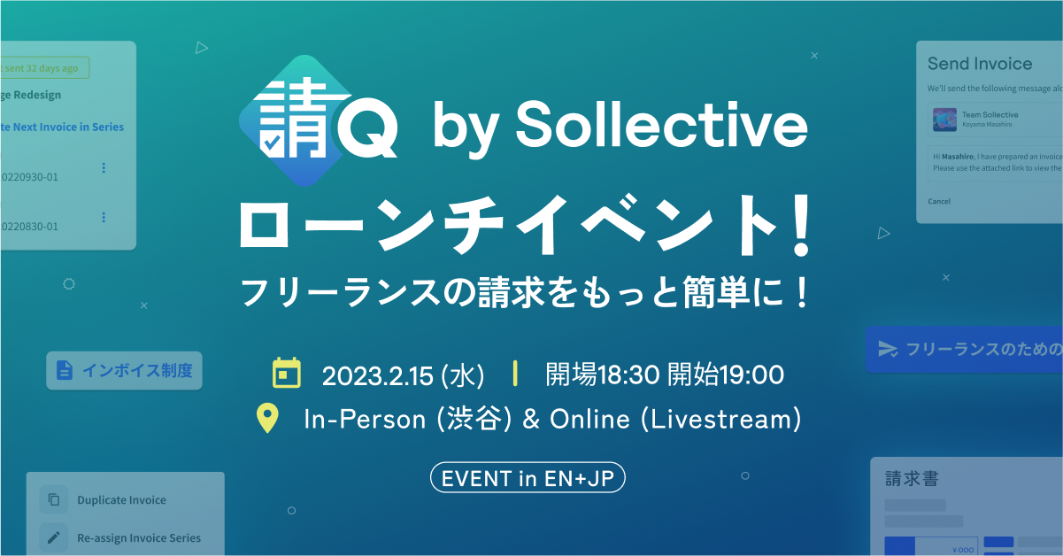概要:開発チームよりサービス開発の背景や機能の説明を行います。また、『請Q by Sollective』を利用した請求書作成のデモンストレーションも予定しています。