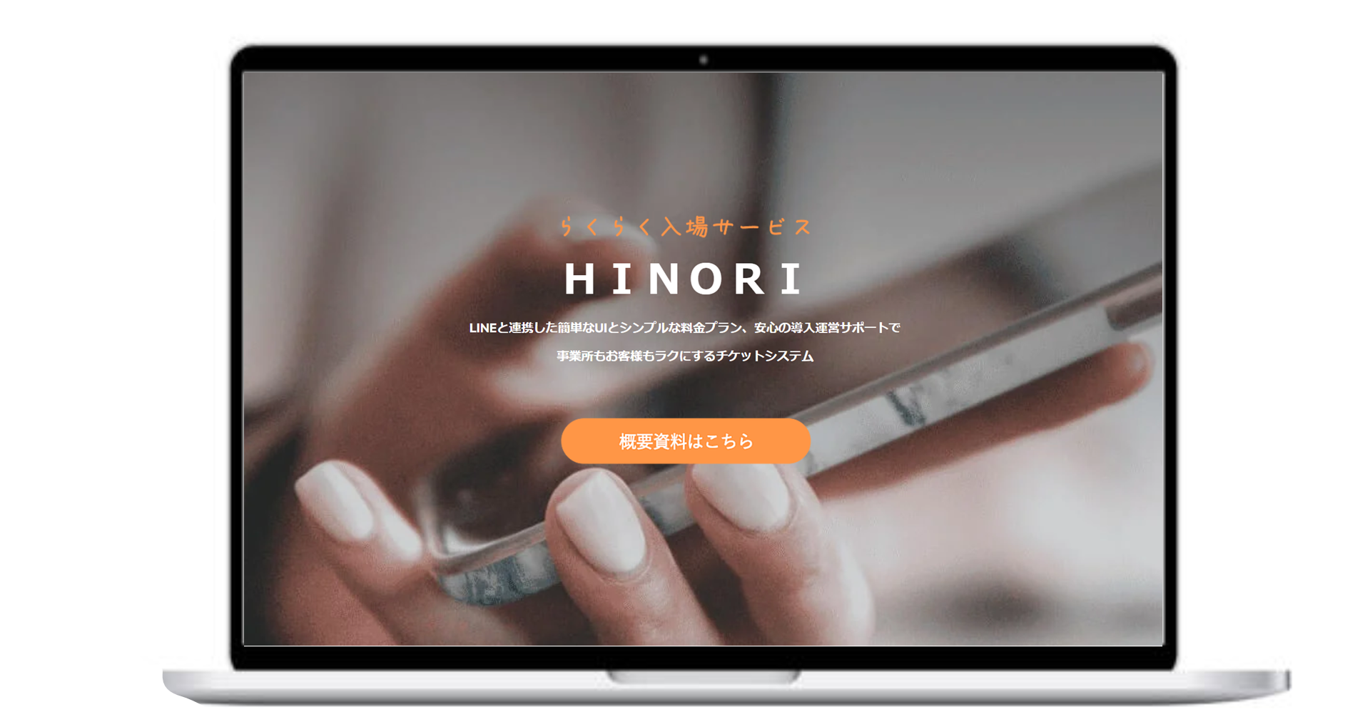 【らくらく入場サービス HINORI】は、LINEと連携した簡単なUIとシンプルな料金プラン、安心の導入運営サポートで事業所もお客様もラクにするチケットシステムです。