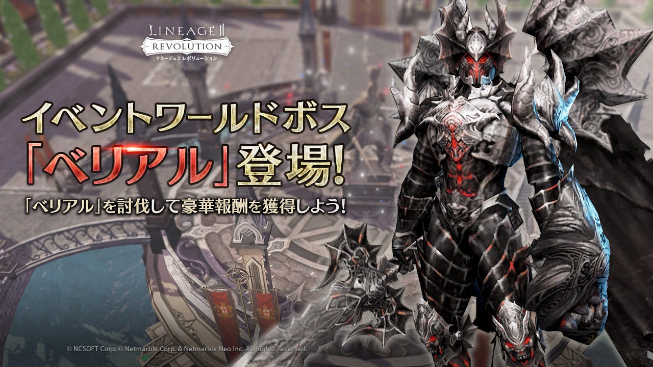 本アップデートより、「イベントワールドボス:ベリアル討伐イベント」を開催いたします。イベント期間中に「ベリアル」を討伐すると、「英雄歓迎会のコイン」や「英雄の軌跡が宿るボックス」を獲得できます。
