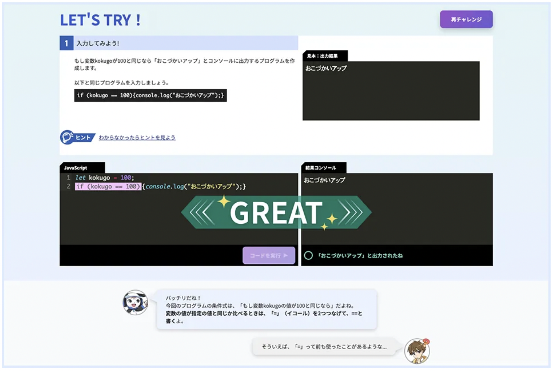 (2)キャラクターとの対話形式で質問に答えながら楽しく学習