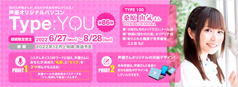 【声優オリジナルパソコン【Type:YOU】第86弾 商品ラインナップについて】